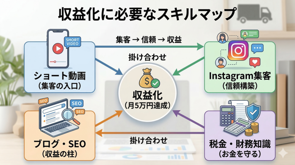 月5万円を達成できた最大の理由は、1つのスキルに依存せず、複数の知識を掛け合わせたことだと思います。